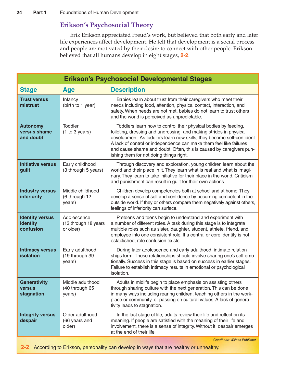 The child hopefully develops a positive sense of. No one has done more to promote this idea than Erik Erikson a psychologist who in the 1950s and 1960s proposed eight stages of psychosocial development. Consider how different a person is at the age of 12 from the person he or she is at age 24.